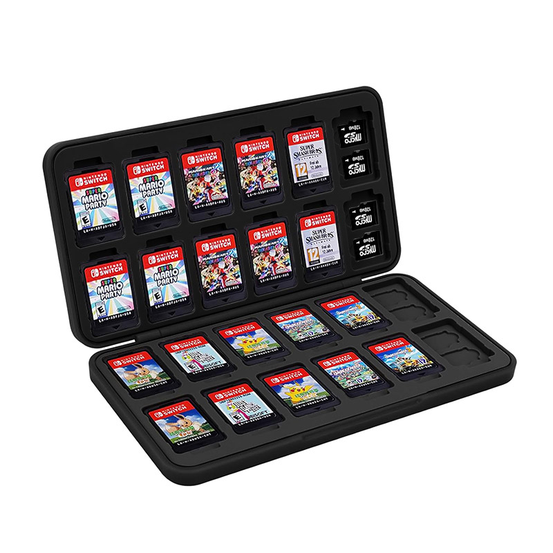 [Protect Your Game Card] The nintendo switch game card box is made of ABS material and soft silicone to provide excellent protection for your Nintendo Switch game cards, securely hold game cards and micro SD cards. This compact game case can hold 24 game cards and 48 micro SD cards.