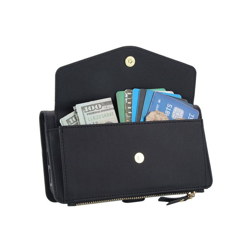 ZXI Crossbody Wallet Phone Case, Zipper Leather Purse, with Card Slot Holder & Detachable Lanyard