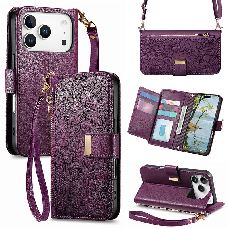 ZXI Crossbody Wallet Phone Case, Zipper Leather Purse, with Card Slot Holder & Detachable Lanyard