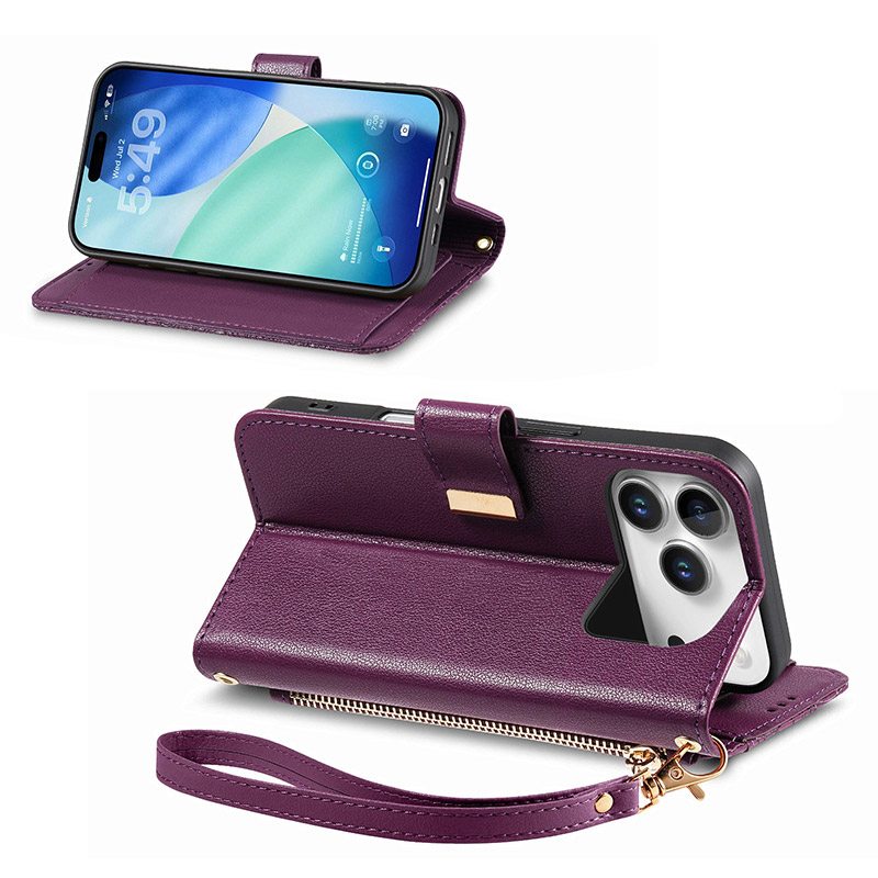 ZXI Crossbody Wallet Phone Case, Multi Function Stylish Ring Zipper Purse Cover, with Card Slots & Wrist Strap