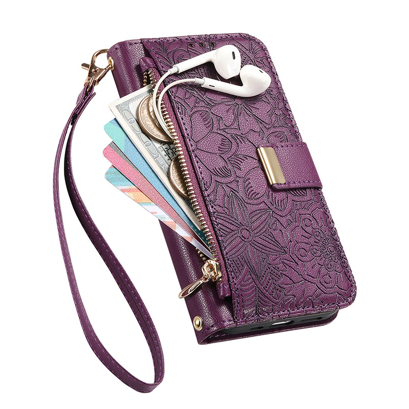 CROSSBODY FLIP WALLET CASE ZXI Crossbody Wallet Phone Case, Zipper Flip Folio Leather Cover, with Card Slot Holder & Wrist Band