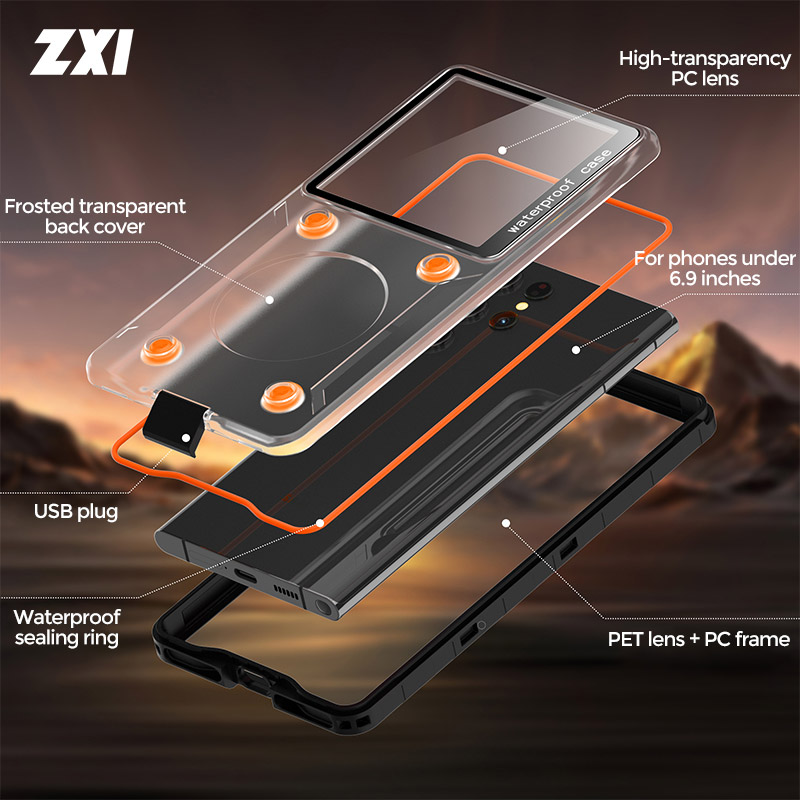 IP68 UNIVERSAL WATERPROOF CASE ZXI IP68 Waterproof Phone Case, Underwater Snorkeling Case, Inflated Touchscreen for Diving for Phone Models 6.9 Inches & Below