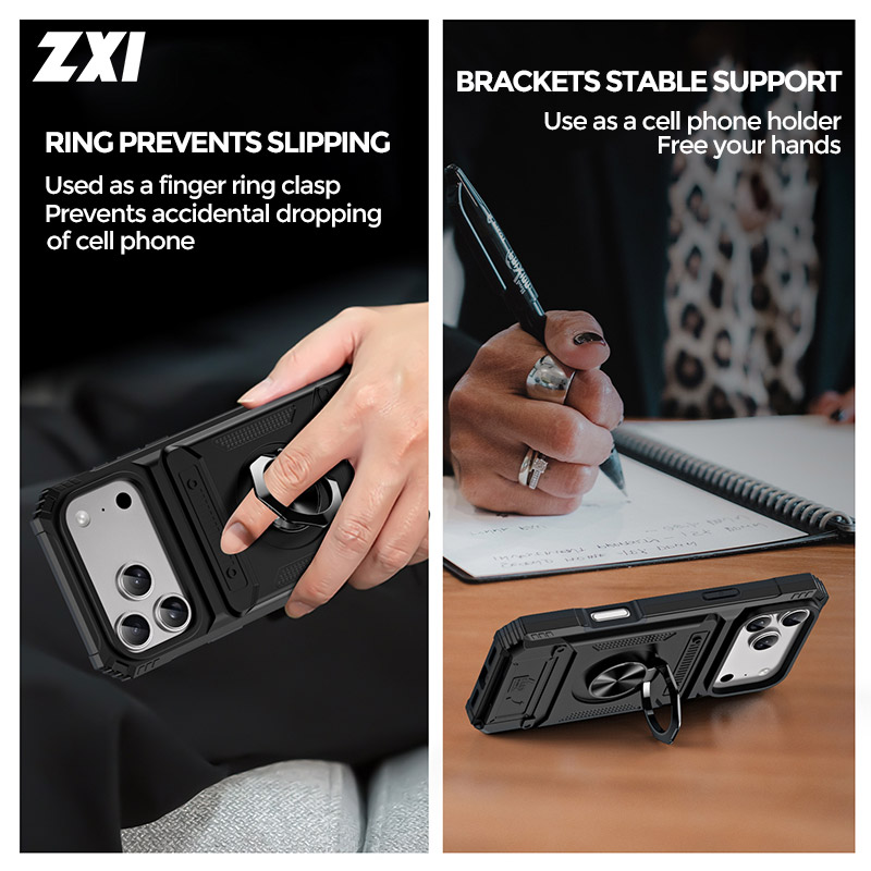 DUAL LAYER WALLET CASE ZXI Dual Layer Wallet Phone Case, with Card Holder & 360° Magnetic Ring Stand, Heavy Duty Shockproof Protective Cover