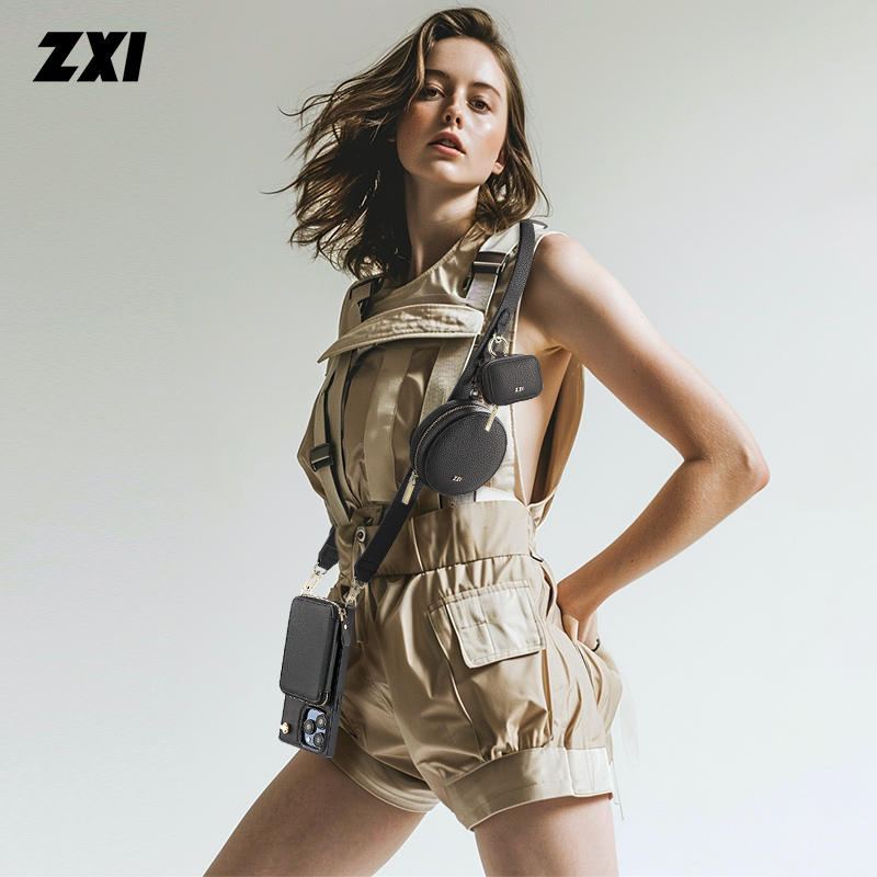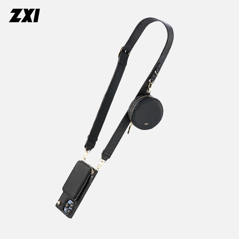 [Round Bag]This ZXI classic lychee round pouch support match with the ZXI crossbody Phone case Or Strap.
