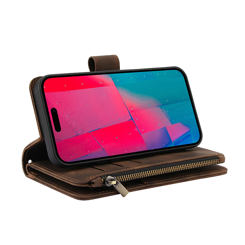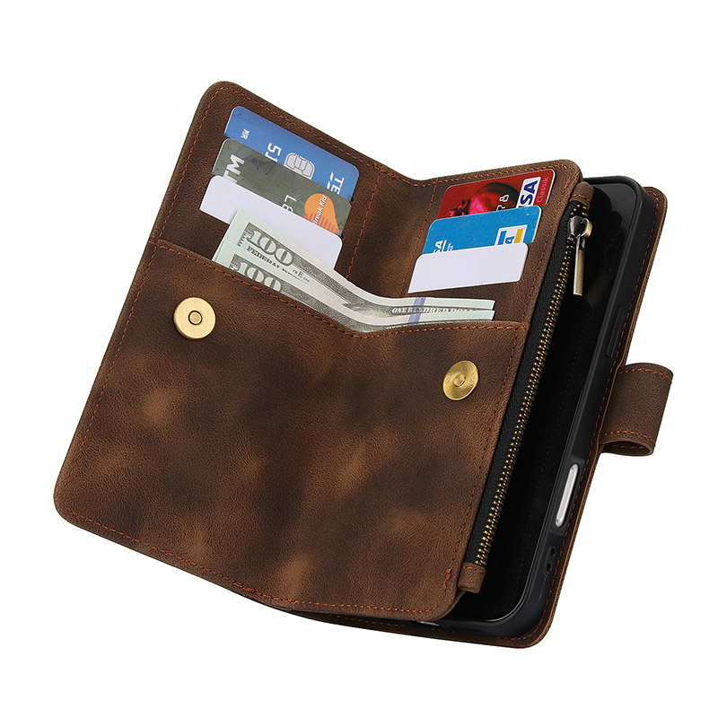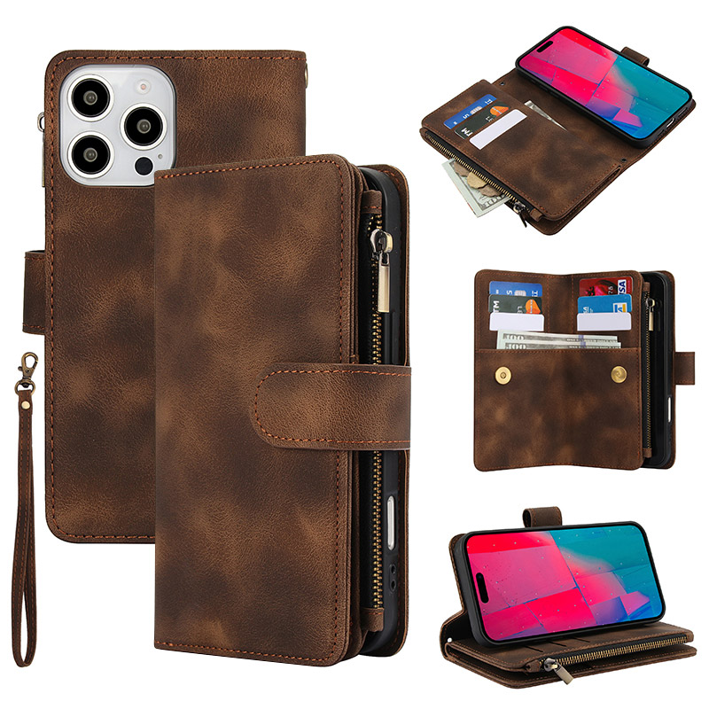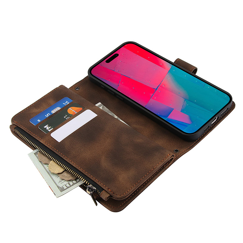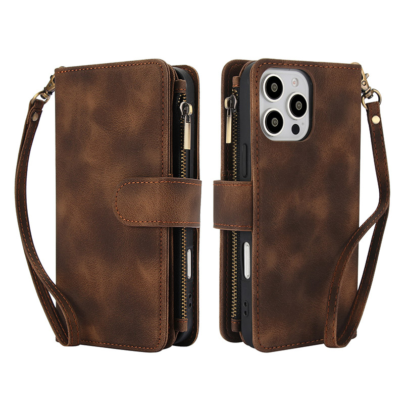 LEATHER FLIP WALLET CASE ZXI Zipper Flip Wallet Phone Case, Premium Leather, Magnetic Closure, with Card Slots & Detachable Lanyard Strap