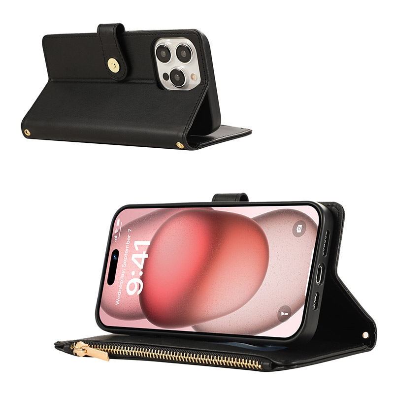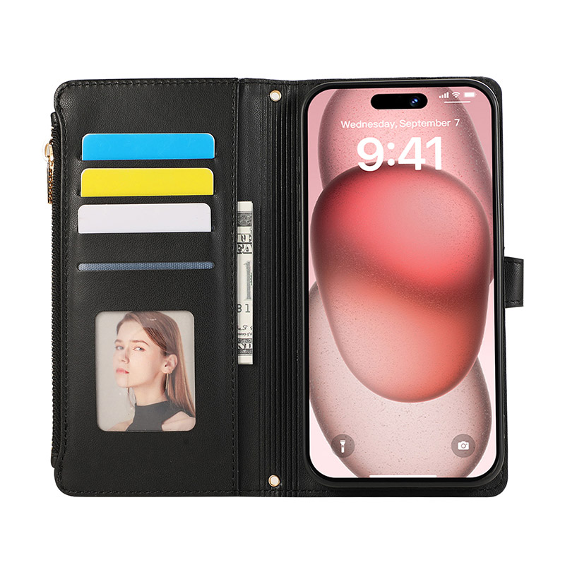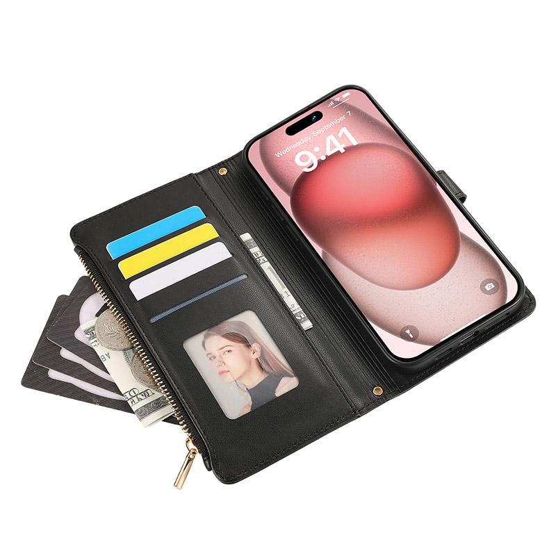 FASHION FLIP WALLET CASE ZXI Fashion Wallet Phone Case, Magnetic Flip Zipper Leather Cover, with Credit Card Slots & Shoulder Strap & Wrist Strap