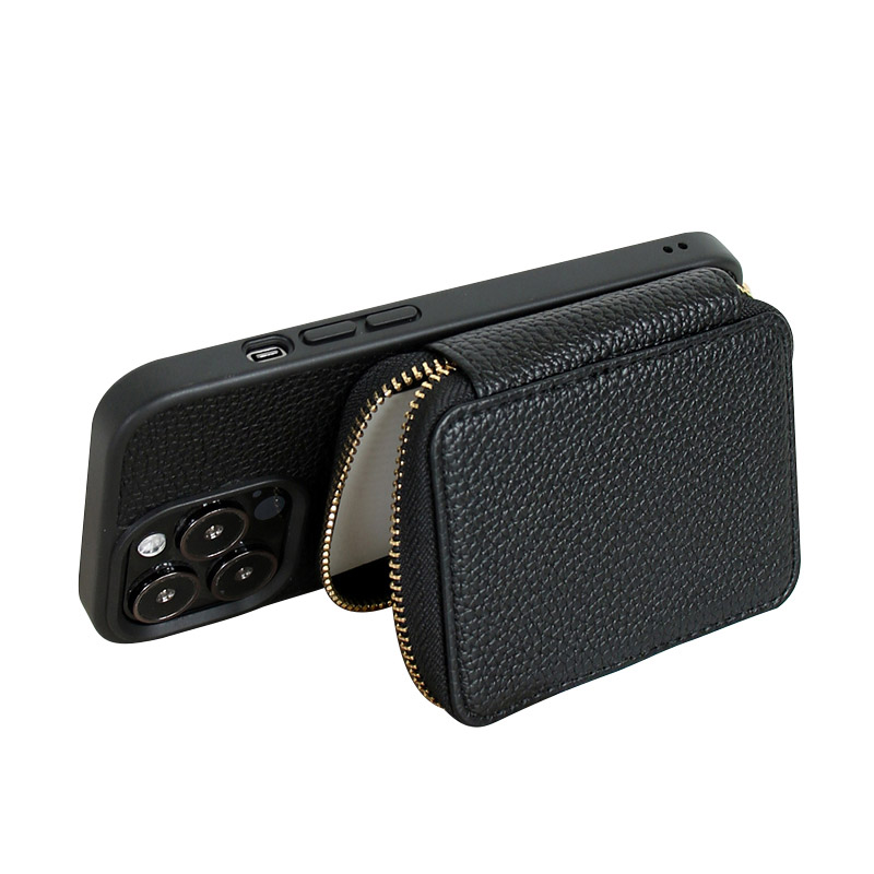 This is a wonderful phone case. It has a zipper pocket that is large enough to hold a couple of credit cards and some cash. It is also very smart looking.