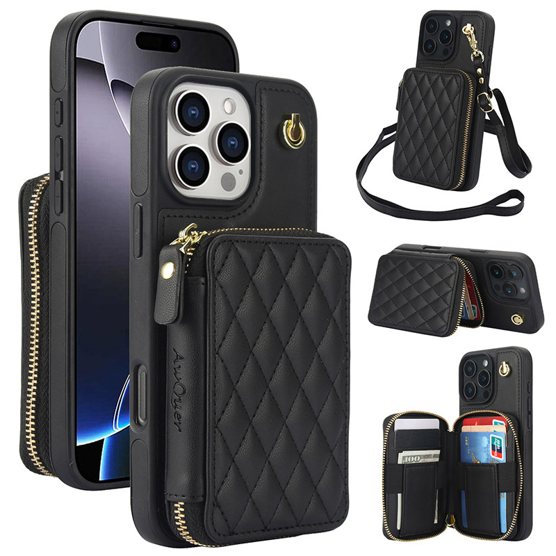 ZIPPER LEATHER WALLET CASE ZXI Crossbody Wallet Phone Case, Zipper Leather Purse, with Card Slot Holder & Detachable Lanyard