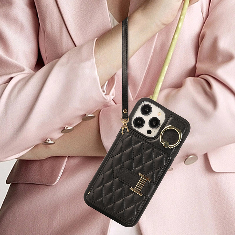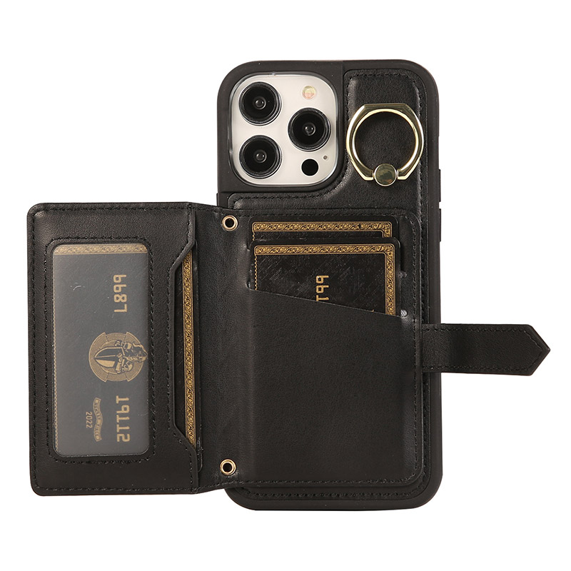 CROSSBODY LEATHER WALLET CASE ZXI Crossbody Wallet Phone Case, 360° Rotating Ring Kickstand, with Credit Card Slots & Wrist Band
