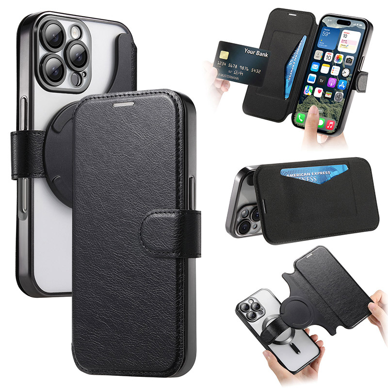 MAGSAFE DETACHABLE WALLET CASE ZXI Detachable Flip Wallet Phone Case, Support Magsafe, Plating Clear Back Cover, Shockproof Protective, with Card Slots