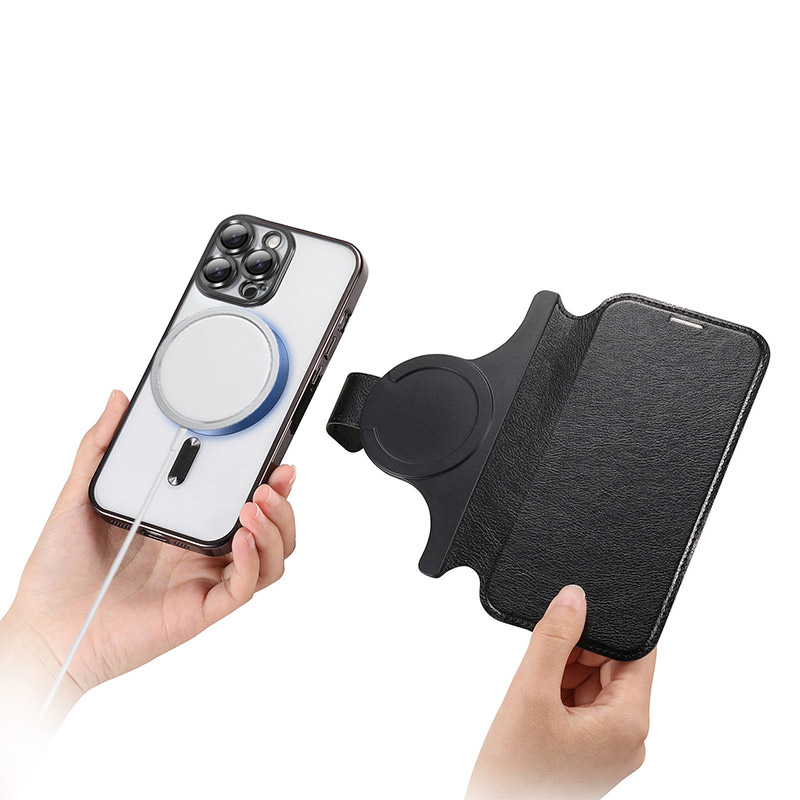 [Detachable 2 in 1 Design] Including one electroplate basic case built-in metallic ring (compatible with magSafe accessories) and one flip cover with card holder, These 2 Parts can be installed together by the magnetic function; Works great with a power bank, magnetic car mount, wireless charger, or phone ring holder.