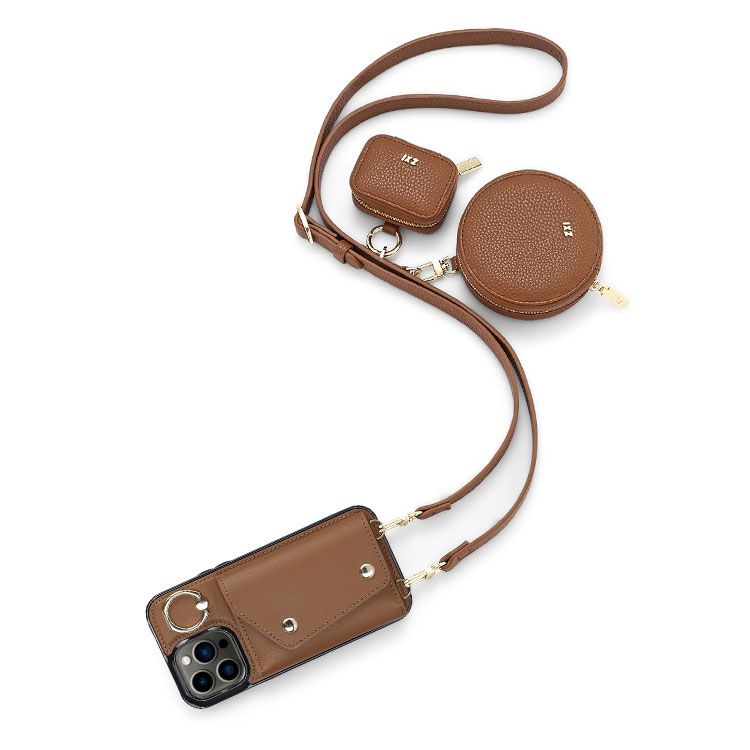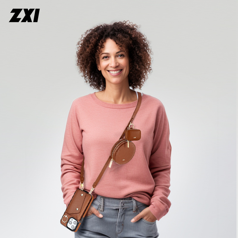 [Round Bag]This ZXI classic lychee round pouch support match with the ZXI crossbody Phone case Or Strap.
