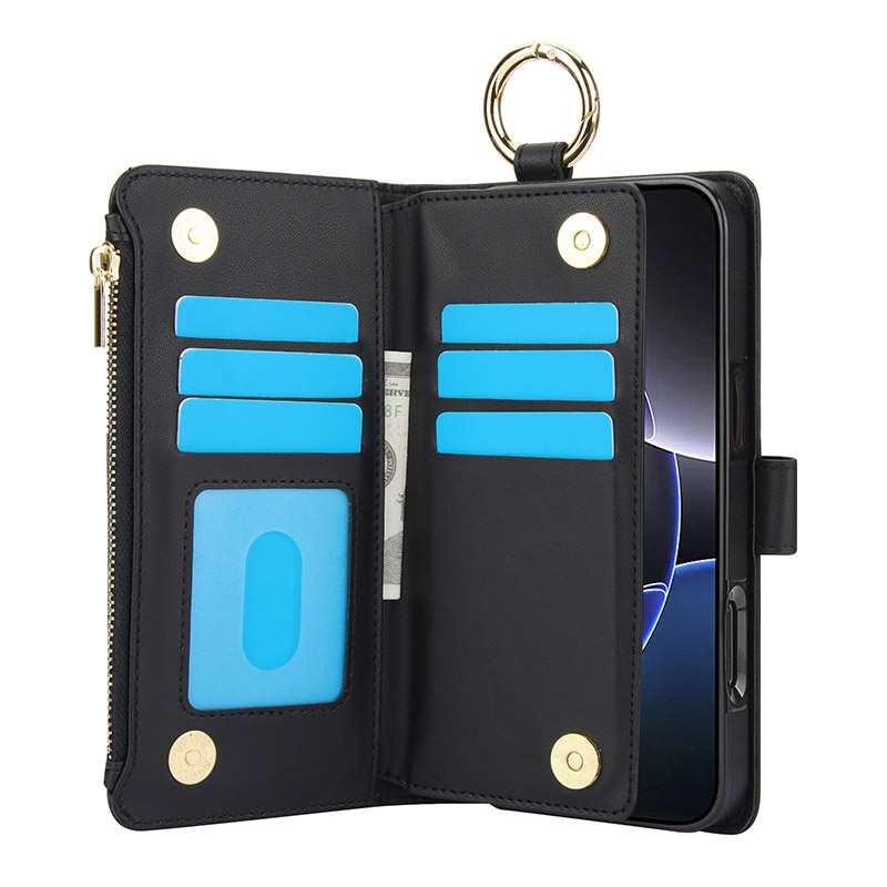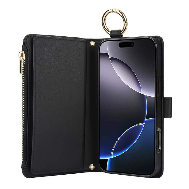 CROSSBODY ZIPPER WALLET CASE ZXI Crossbody Wallet Phone Case, Multi Function Stylish Ring Zipper Purse Cover, with Card Slots & Wrist Strap