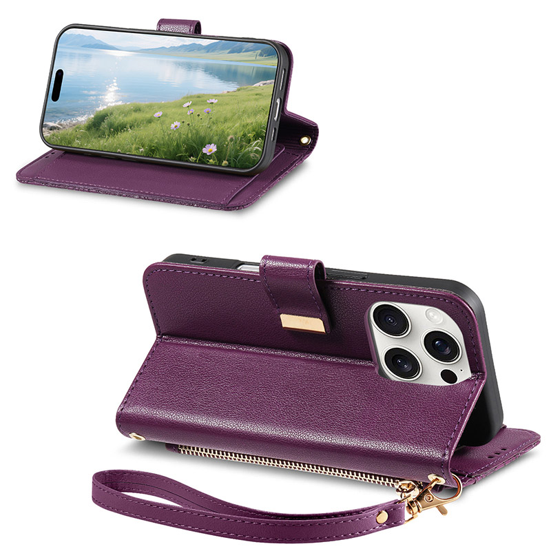 ZXI Zipper Flip Wallet Phone Case, Premium Leather, Magnetic Closure, with Card Slots & Detachable Lanyard Strap