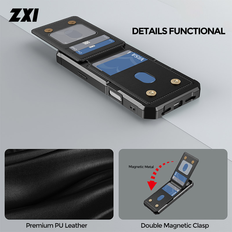 HEAVY DUTY FLIP WALLET CASE ZXI Heavy Duty Wallet Phone Case, Magnetic Closure, Flip Card Slots, TPU Bumper Protective Cover