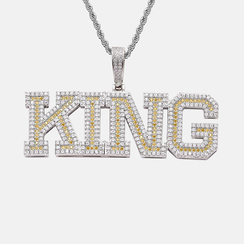 [Features & Material] This pendant's single letter width is 0.72in(18mm), height 2in(50mm). The chain length is 18in(45cm), 20in(50cm) and 24in(60cm). It have gold and white gold color for options. This pendant made of 18k gold plated & copper and 5A CZ zirconia, not fade, non-sensitive, harmlessful for your skin. The pendant will make you turn heads in the club, it's also great for hip-hop lovers, and rappers to wear at performance shows. Note: Dimensions of customized items are for reference only.